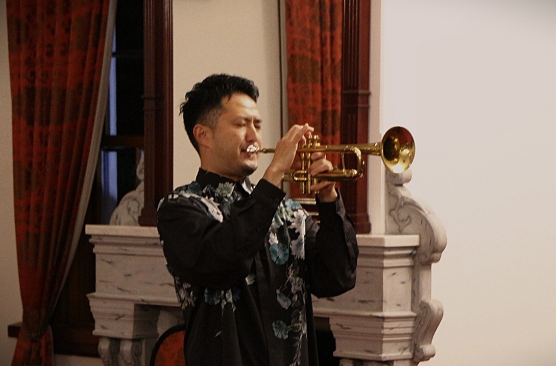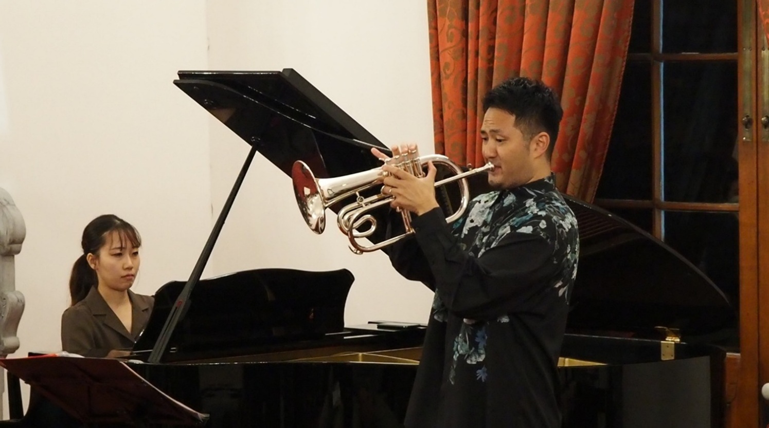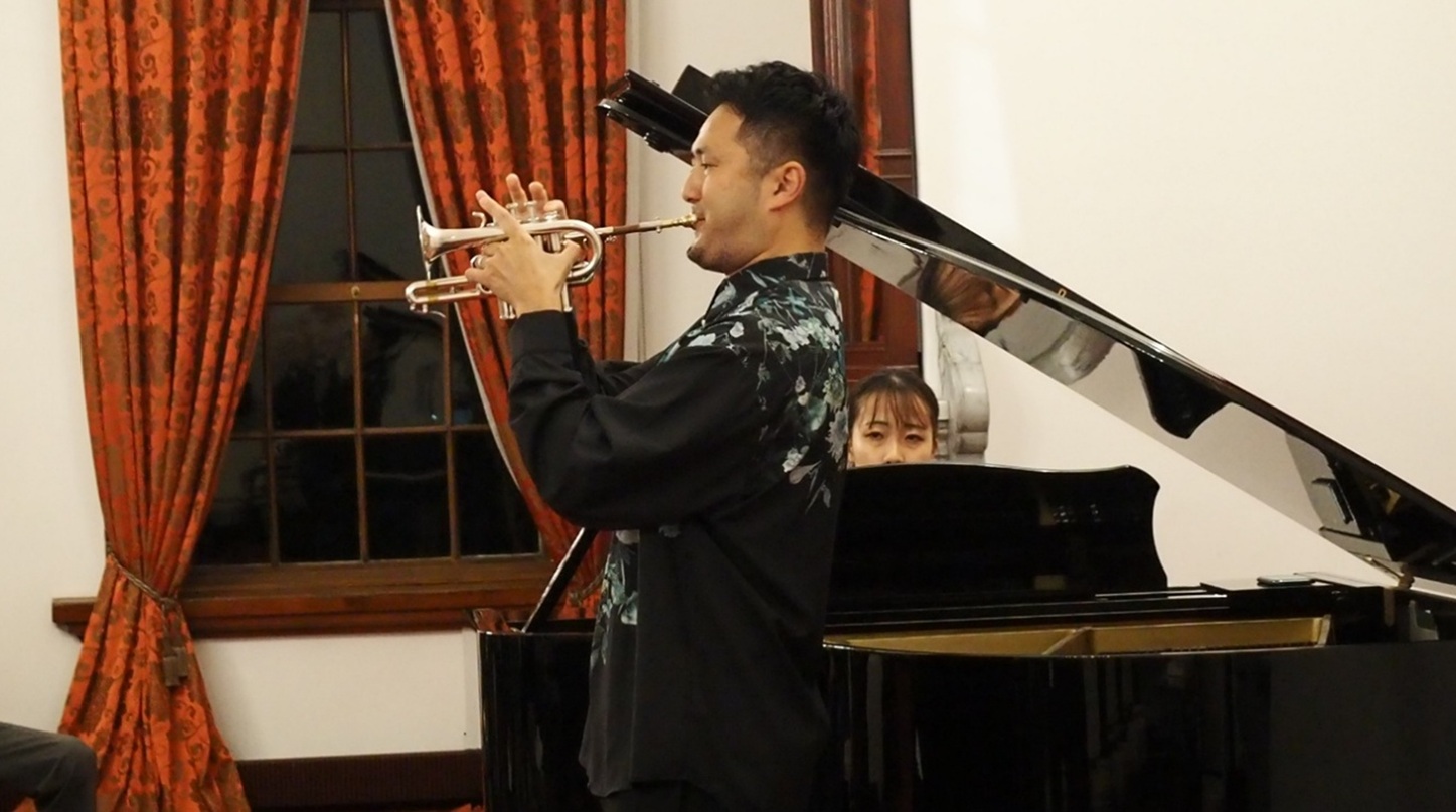 第43回札響くらぶサロン開催の報告 (10/25) 故上田文雄札響くらぶ会長に献奏、献杯する 第43回札響くらぶサロンは10月9日午後7時から豊平館2階広間で開催れ、9月18日にこの世を去った上田文雄札響くらぶ会長の愛用のトランペットによるに札響トランペット奏者小林昌平さんがアヴェ・マリアを献奏して、全体的に厳かな雰囲気で始まり、献奏後に上田会長のトランペットは会場右側に設置された上田会長の遺影に返納されました。 第1部のサロンコンサートでは札響トランペット奏者小林昌平さん、ピアニスト城真由さんにより開演され、ヘンデル作曲『組曲ニ長調」をピッコロトランペットで、2曲目以降フェルスター作曲「ホルン協奏曲」、グノー作曲「6つの旋律的作品第1~3番」、シューマン作曲「アダージョとアレグロ」を、アンコール曲はグノー作曲「6つの旋律的作品第4番」をフリューゲルホルンで演奏され、どの曲もピアノ伴奏が重なり、色鮮やかな雰囲気を醸し出され、万雷の拍手が会場に響き渡りました。 第2部の交流パーティーは、乾杯に変えて上田会長の遺影に向かって献杯をしてから始まり、ビールやワイン、豪華なオードブルで出演者札響楽員を交えての楽しい歓談が続き、パーティー終了間際に札響楽員によるコンサートの紹介がありましたが、ビールやワインなどが入っていることもあり、話に夢中になっているテーブルもあり、コンサートの紹介時間帯を検討する必要があると感じました。 上田家からの参加がなかったことは少し残念なことではありましたが、上田会長のご冥福をお祈りいたします。