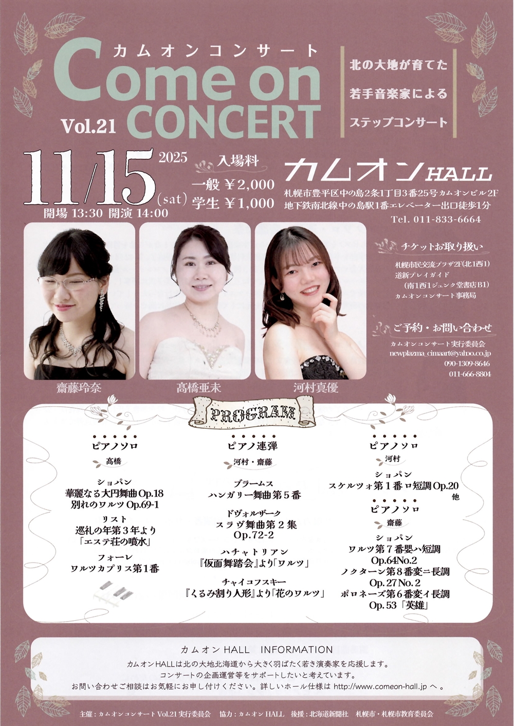 札幌市生涯学習総合センターちえりあホール(札幌市西区宮の沢1条1丁目1-10)