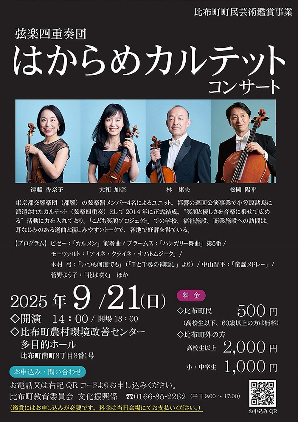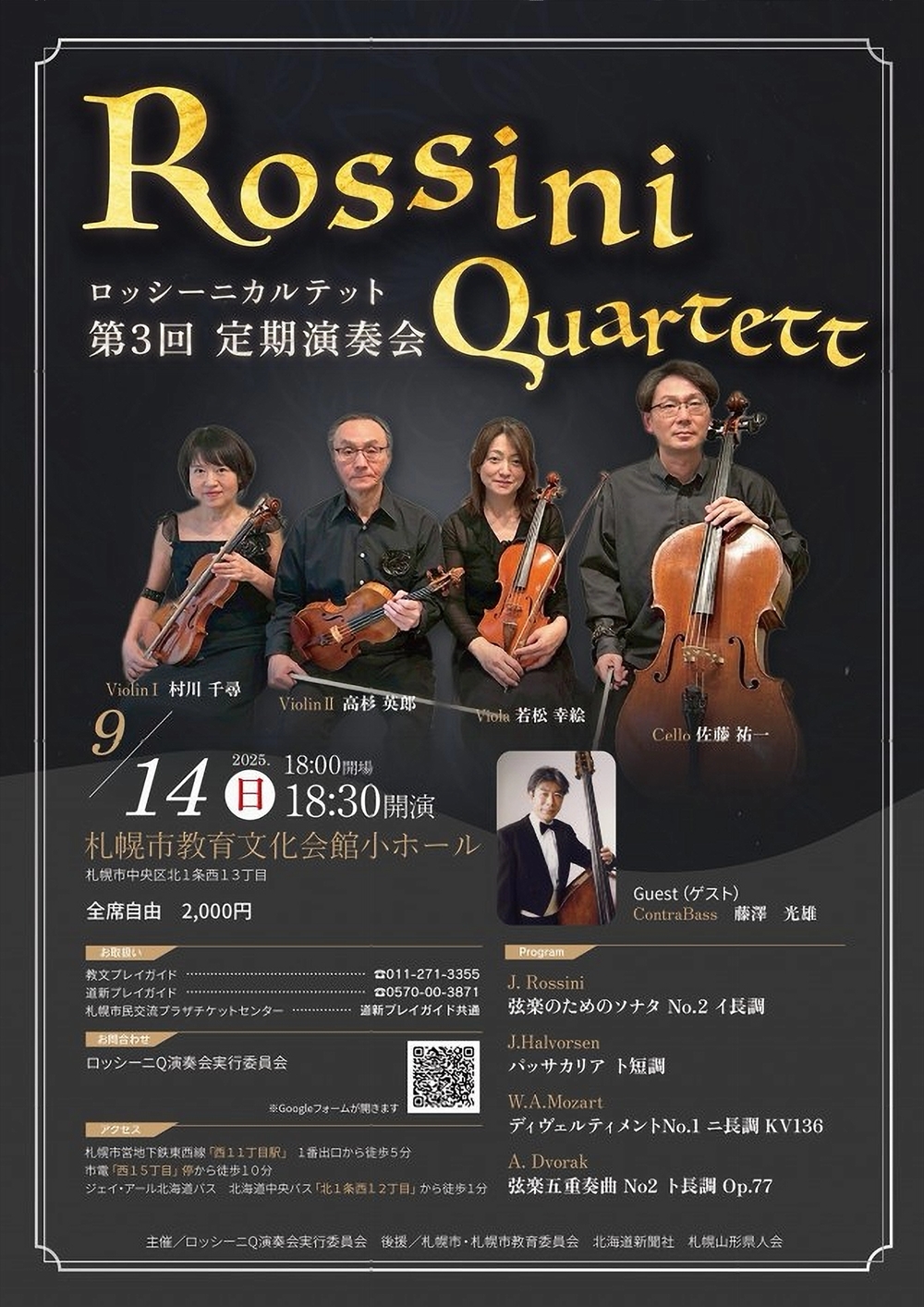 String Quartet CLASSICAL & UNTIMITED∞ 9月2日(火)19:00 札幌コンサートホールKitara小ホール 出演 ヴァイオリン/執行 恒宏 ヴァイオリン/石田 泰尚 チェロ/阪田 宏彰 ヴィオラ/榎戸 崇浩 曲目 グリーグ/弦楽四重奏曲 ピアソラ/リベルタンゴ クイーン/ボヘミアン・ラプソディ ・・・他 |