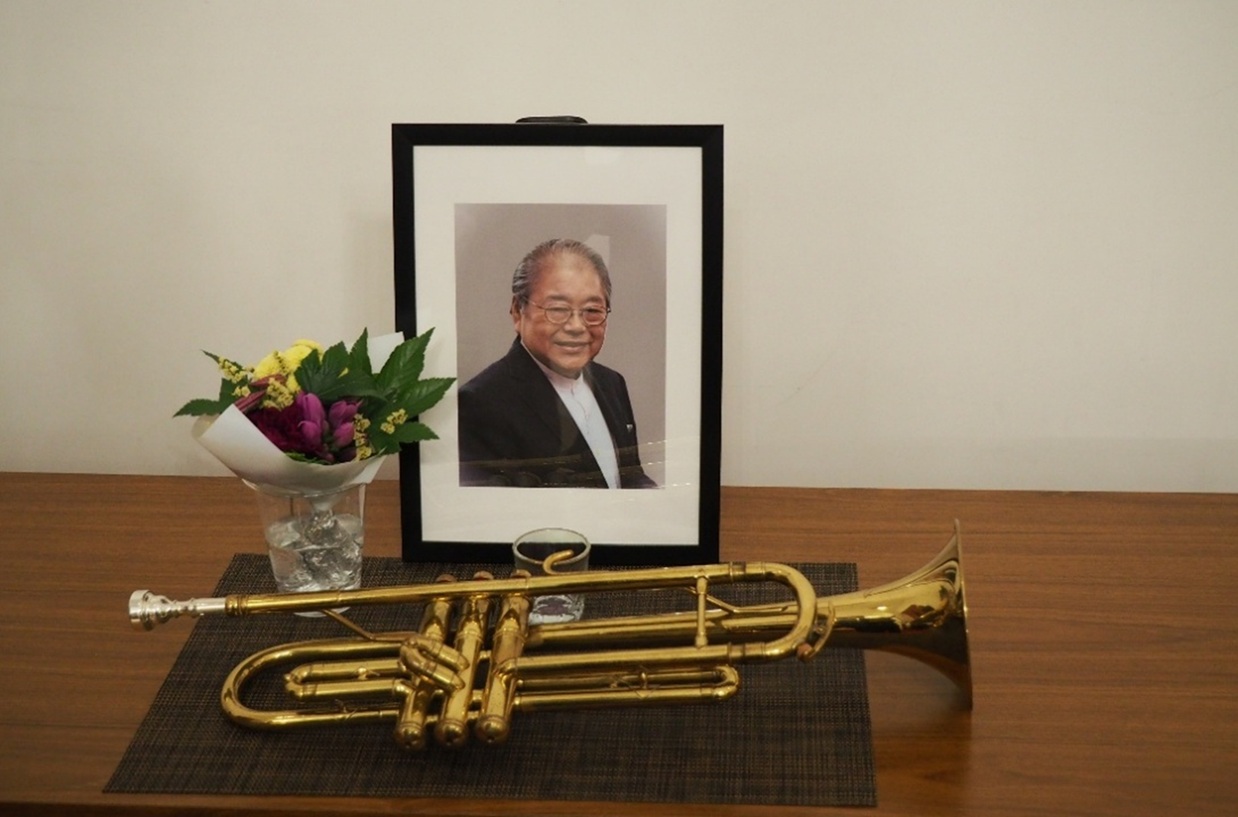 第43回札響くらぶサロン開催の報告 (10/25) 故上田文雄札響くらぶ会長に献奏、献杯する 第43回札響くらぶサロンは10月9日午後7時から豊平館2階広間で開催れ、9月18日にこの世を去った上田文雄札響くらぶ会長の愛用のトランペットによるに札響トランペット奏者小林昌平さんがアヴェ・マリアを献奏して、全体的に厳かな雰囲気で始まり、献奏後に上田会長のトランペットは会場右側に設置された上田会長の遺影に返納されました。 第1部のサロンコンサートでは札響トランペット奏者小林昌平さん、ピアニスト城真由さんにより開演され、ヘンデル作曲『組曲ニ長調」をピッコロトランペットで、2曲目以降フェルスター作曲「ホルン協奏曲」、グノー作曲「6つの旋律的作品第1~3番」、シューマン作曲「アダージョとアレグロ」を、アンコール曲はグノー作曲「6つの旋律的作品第4番」をフリューゲルホルンで演奏され、どの曲もピアノ伴奏が重なり、色鮮やかな雰囲気を醸し出され、万雷の拍手が会場に響き渡りました。 第2部の交流パーティーは、乾杯に変えて上田会長の遺影に向かって献杯をしてから始まり、ビールやワイン、豪華なオードブルで出演者札響楽員を交えての楽しい歓談が続き、パーティー終了間際に札響楽員によるコンサートの紹介がありましたが、ビールやワインなどが入っていることもあり、話に夢中になっているテーブルもあり、コンサートの紹介時間帯を検討する必要があると感じました。 上田家からの参加がなかったことは少し残念なことではありましたが、上田会長のご冥福をお祈りいたします。